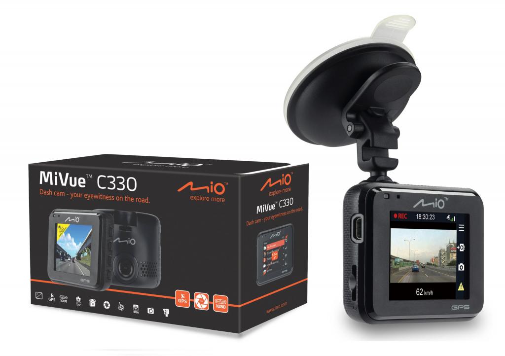 Авторегистратор Mio MiVue C330 содержит стеклянные линзы и инфракрасный фильтр. Имеется цветной дисплей, который управляется с помощью 4 кнопок.