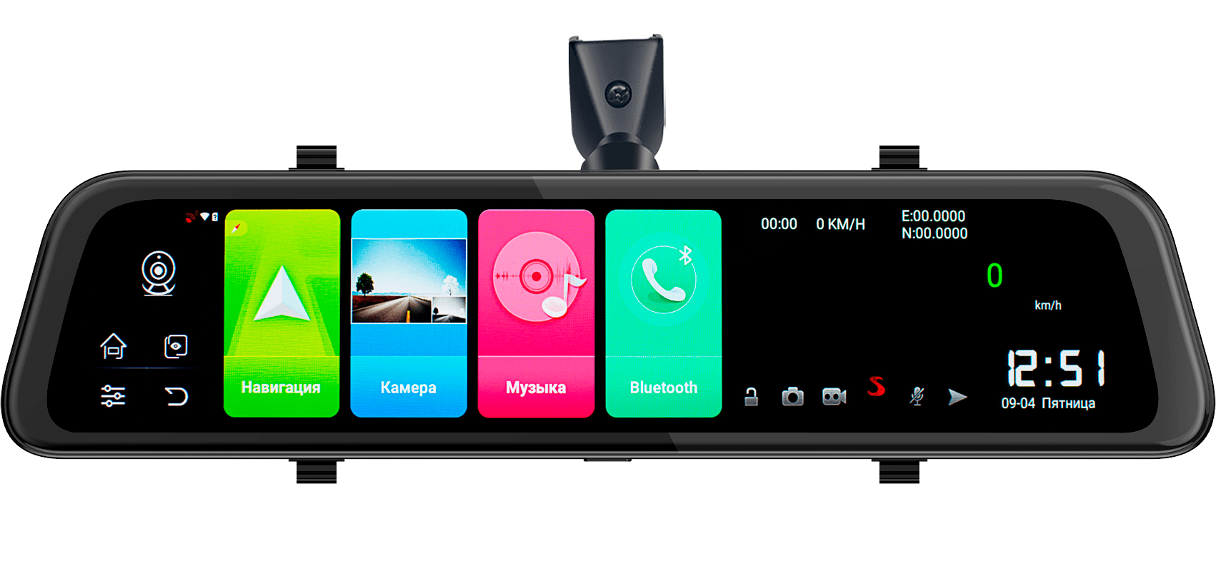 Видеорегистратор-зеркало с тачскрином с диагональю 12 дюймов отличается информативностью. Процессор 1,4 ГГц с 4 ядрами обеспечивается быструю работу установленных приложений. Устройство с камерой Full HD записывает картинку с высоким разрешением. Поддерживает карты памяти на 128 Гб, комплектуется 4G модулем для подключения к мобильному интернету. Видеокамера заднего вида автоматически выводит изображение на экран при включении соответствующей передачи.