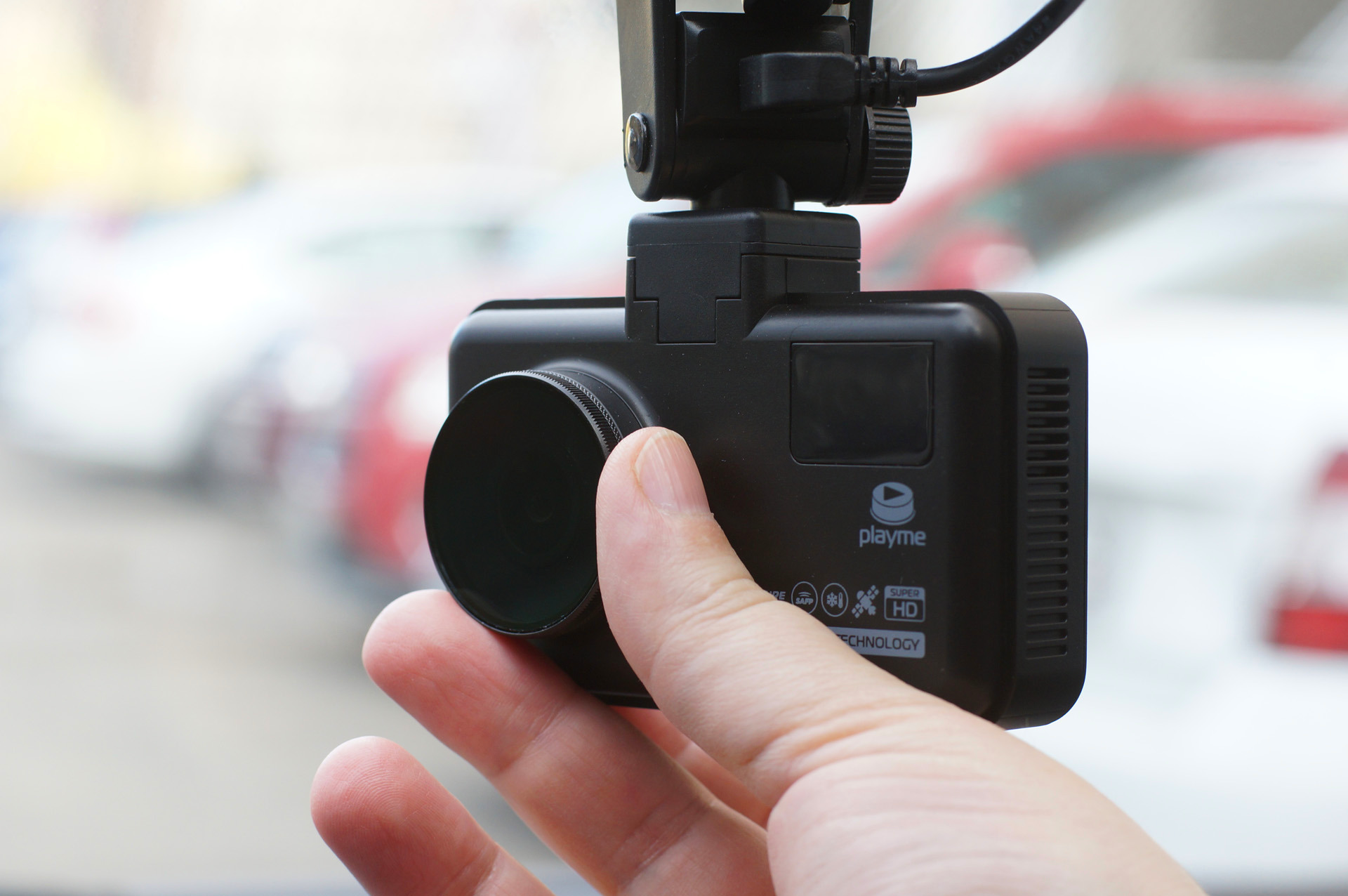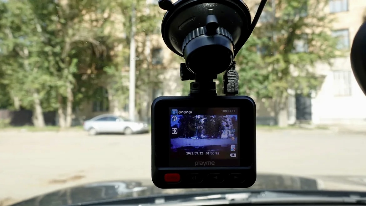 Сам видеорегистратор – небольшой, кронштейн Playme GO крепится на лобовое стекло при помощи присоски, а снимается устройство простым сдвигом вбок.