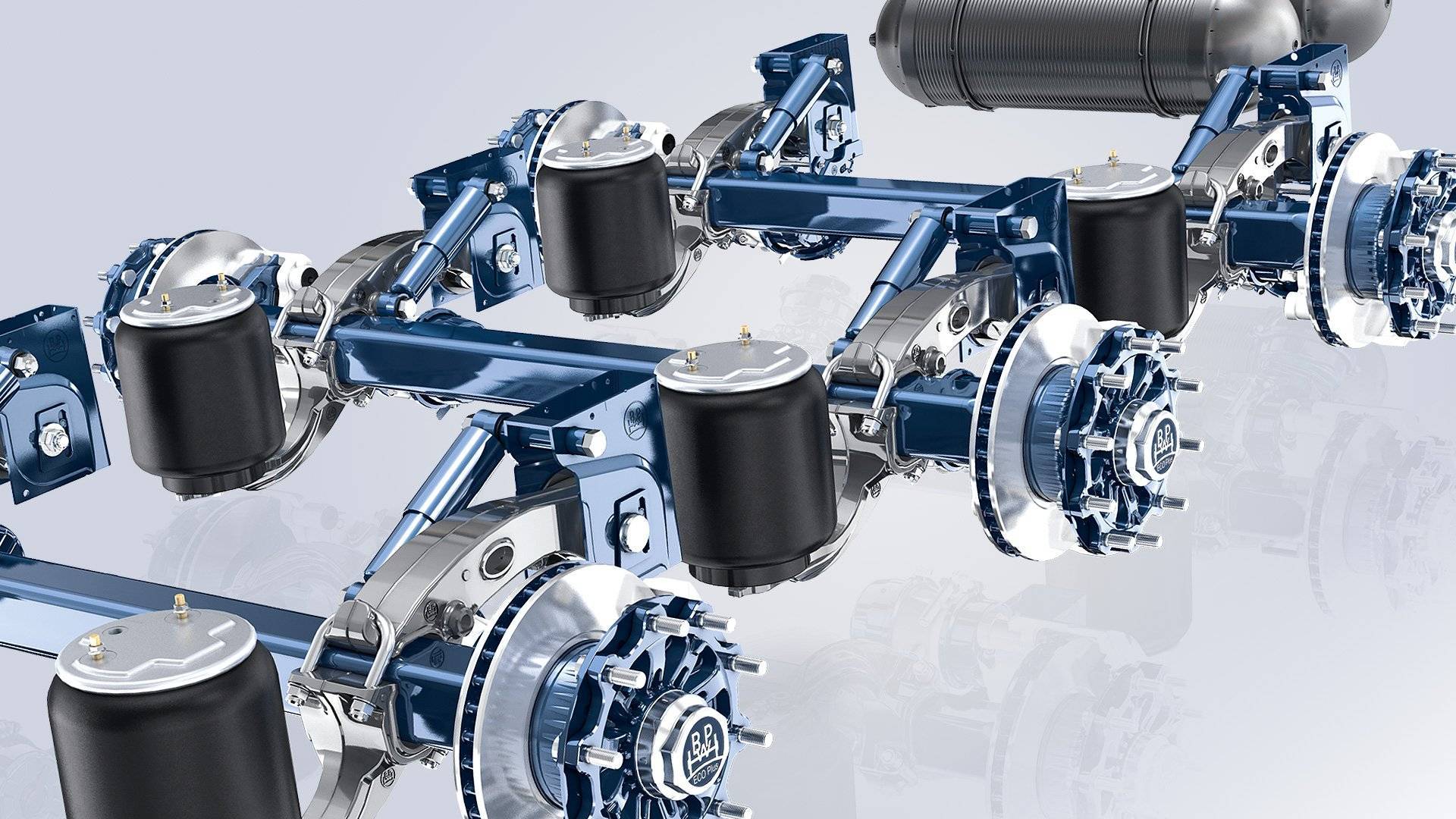 При наличии прицепа магистрали питания и управления коммутируются отдельно. При установке тормозных камер на прицепном устройстве с энергоАКБ формируется управляющая цепь для этих устройств. По магистрали поток воздуха обходит тормозной кран и заполняет ресивер прицепной конструкции. Далее пневматический сигнал идет к управляющей цепи крана, управляемого одним-двумя регулятора.