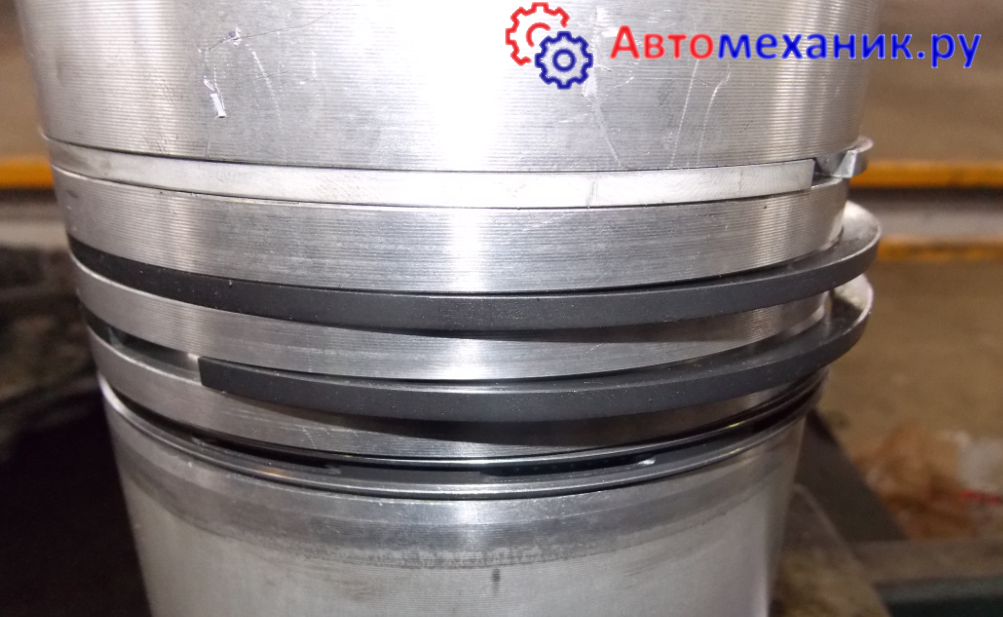 Теперь наша задача установить поршневые кольца. Они так же имеют направление установки. Кольца имеют проточки либо по внутреннему диаметру кольца либо по внешнему . Если по внутреннему диаметру проточка то кольцо ставится проточкой вверх если проточка по наружному диаметру то кольцо ставится проточкой вниз. Компрессионные кольца чугунные верхнее кольцо хромированное. Маслосъёмные кольца имеют различную конструкцию, устанавливайте их согласно прилагаемым к ним инструкциям.
