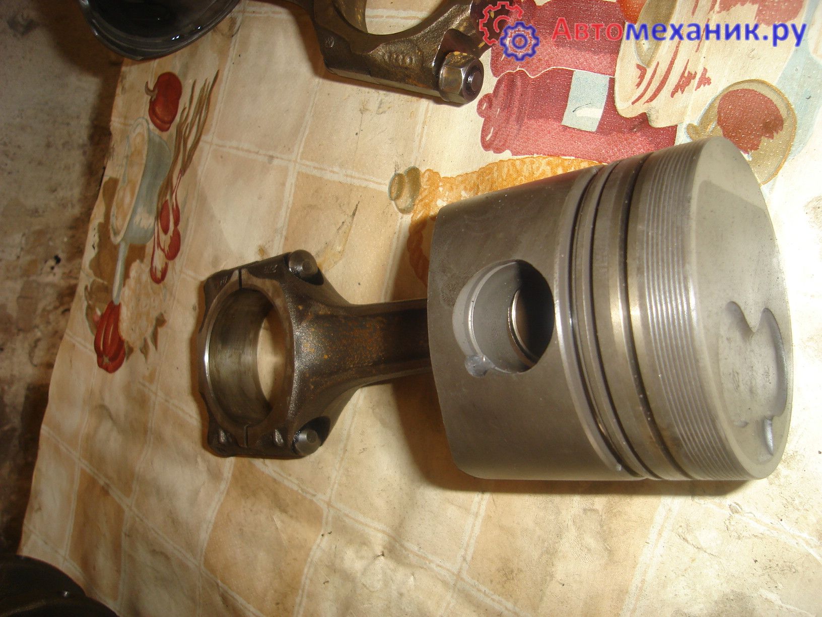 Вначале снимают шатуны. Коленчатый вал поворачивают таким образом, чтобы два шатуна заняли свое верхнее положение. Затем с крышки шатуна откручивают гайки и бугель снимают. По крышке иногда придется слегка постучать молотком – по бокам детали. Далее извлекается шатун полностью вместе с поршнем – может выйти от усилия рук или при помощи молотка.