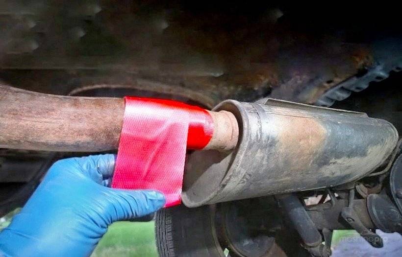 Одно из распространенных решений для быстрой реанимации глушителя — это бандажная лента. Она позволит временно отремонтировать деталь, поэтому считать данный метод полноценным восстановлением нельзя. Однако в качестве терапевтической меры вполне сойдет, тем более, если у владельца машины пока нет средств для осуществления капиталки.
