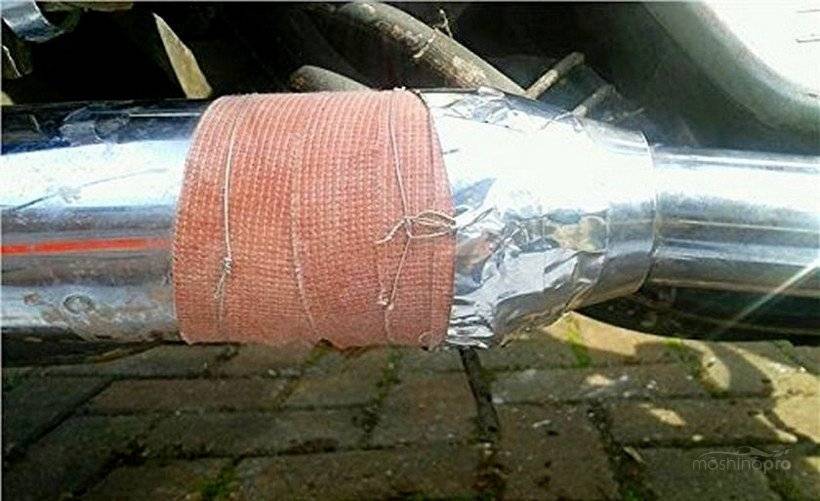 Такой ремонт гофры глушителя используется, если нет новой детали. Работа производится в следующей последовательности:
