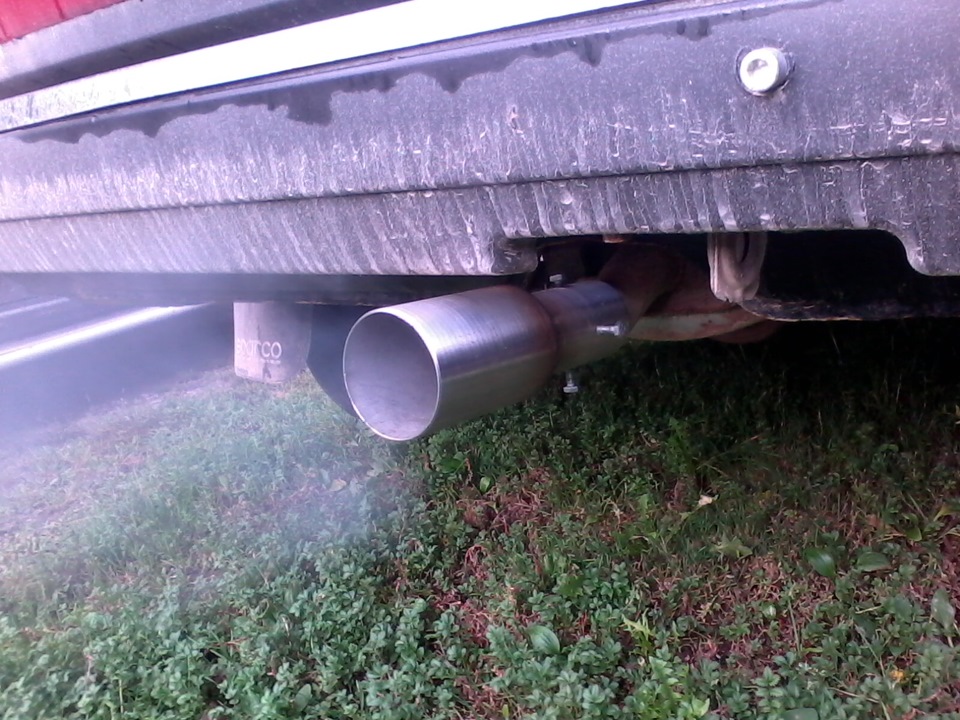 - Наличие примесей, вылетающих из глушителя при работе: насыщенный цветной или белый дым, капли влаги или масла. Данный признак также может свидетельствовать о неисправности двигателя, поэтому требуется дополнительная диагностика.