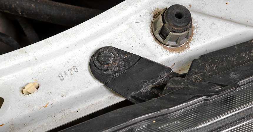 - Удар, направленный в переднюю часть автомобиля. Зачастую происходит во время несерьезных ДТП и может привести к сквозным повреждениям.
