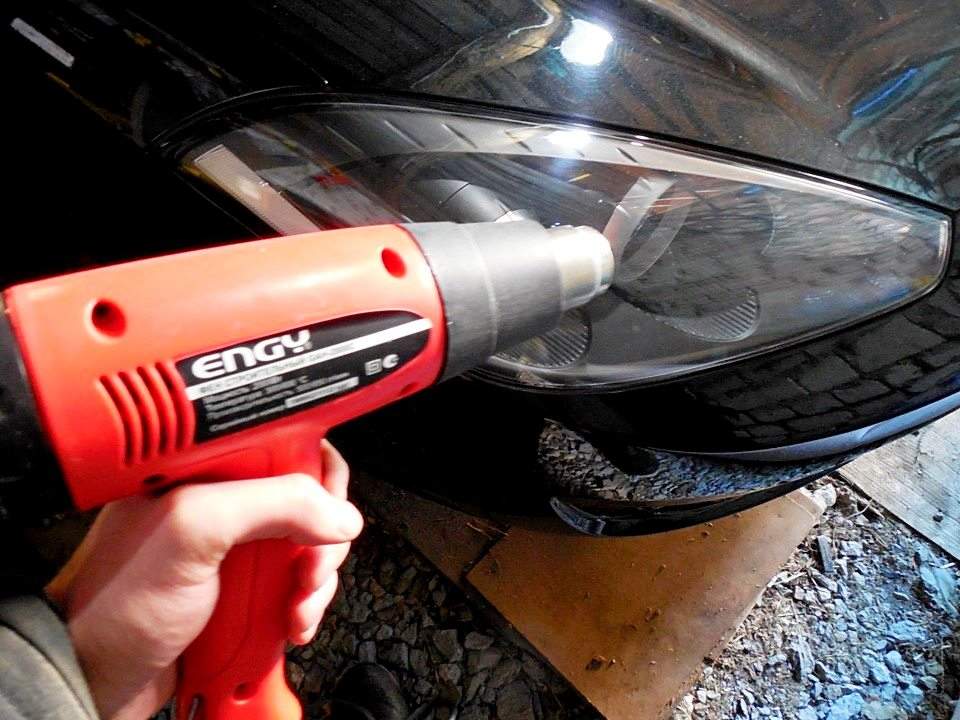 Клеевой слой надо будет разогреть. Лучше всего для этого использовать строительный фен с точной регулировкой температуры – он позволяет прогреть шов локально, не перегревая остальные участки. Немного худший вариант – фен со ступенчатой регулировкой температуры. Если такой прибор недоступен, придется разогревать клей в духовке, но вместе с ним нагреется вся фара