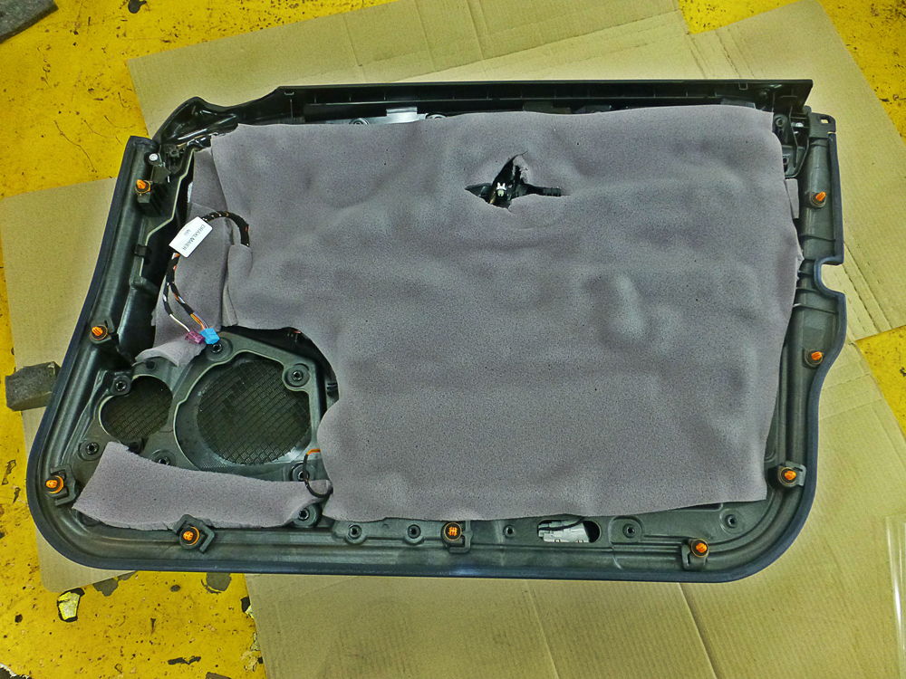 - По выкройке подготовить новую обивку и натянуть, прорезать необходимые отверстия и вернуть на место вышесказанную фурнитуру.