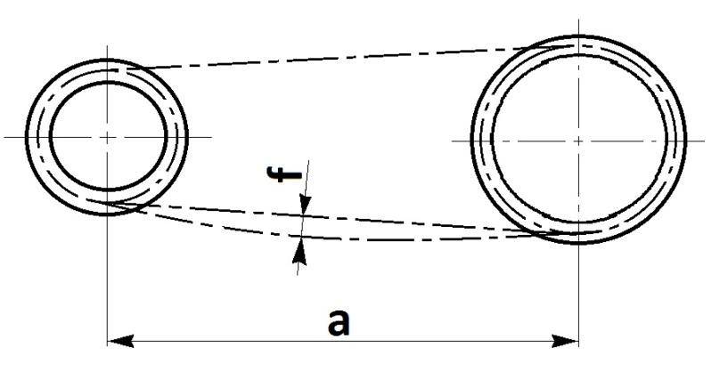 -для передачи с большим углом и, близких к вертикальным, f≈(0,01…0,015)a.