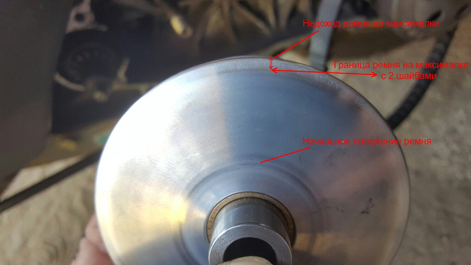 ..Принцип работы вариатора такой, что на переднем вариаторе ремень должен быть как можно выше.Поэтому нужно играться шайбами и грузиками тоже.