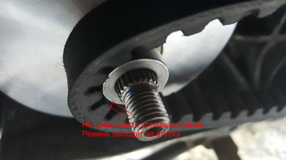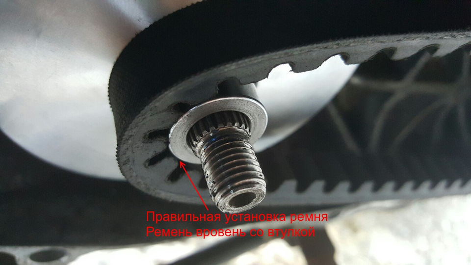 ..Вот так сидел ремень если поставить вариатор новый как есть, без настроечных шайб. Ремень сидит как бы не очень правильно. Он выступает за втулку.
