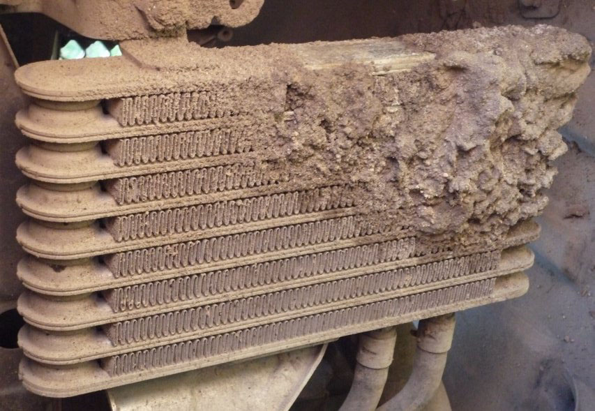 На некоторых транспортных средствах для создания необходимого температурного режима масла кроме теплообменника создается добавочный радиатор в моторном отсеке, располагается он перед конденсором климатической установки. Конденсор имеет свойство загрязняться пылью через воздуховоды, что блокирует его работу.