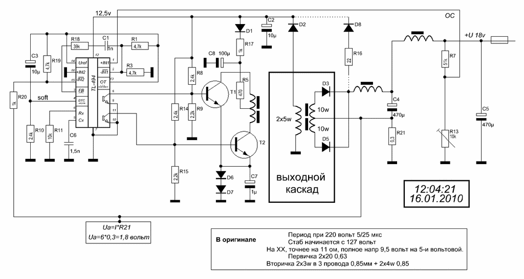 Мы не будет ограничиваться простым ЗУ, поэтому рассмотрим переделку БП с использованием ШИМ TL 494, который, кстати, считается самым распространённым.
