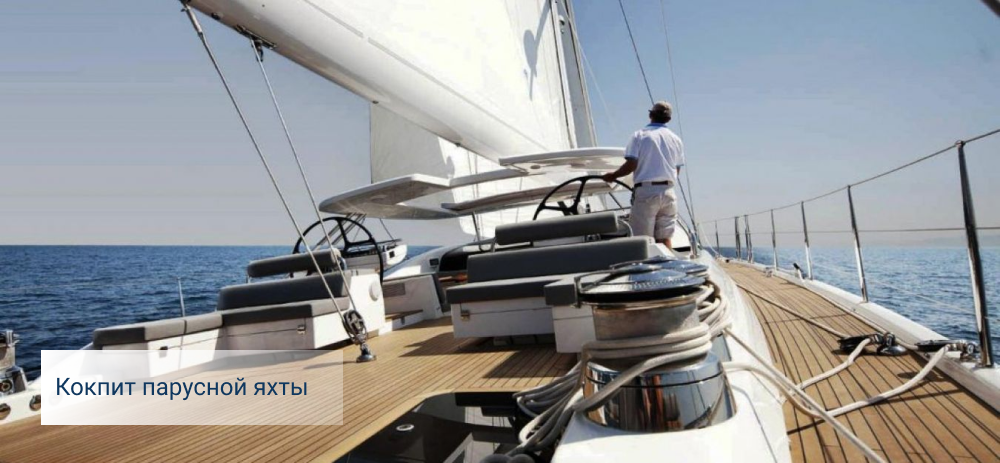 По виду средиземноморский кокпит парусной яхты напоминает стандартную лодочную палубу, только большего размера и смещенную в кормовую часть судна. Такая конструкция позволяет наслаждаться морским круизом и одновременно загорать под открытым небом, любоваться морскими пейзажами и нырять с палубной площадки в прохладную воду. В общем идеальный вариант для отдыха в солнечном и относительно спокойном Средиземноморье.