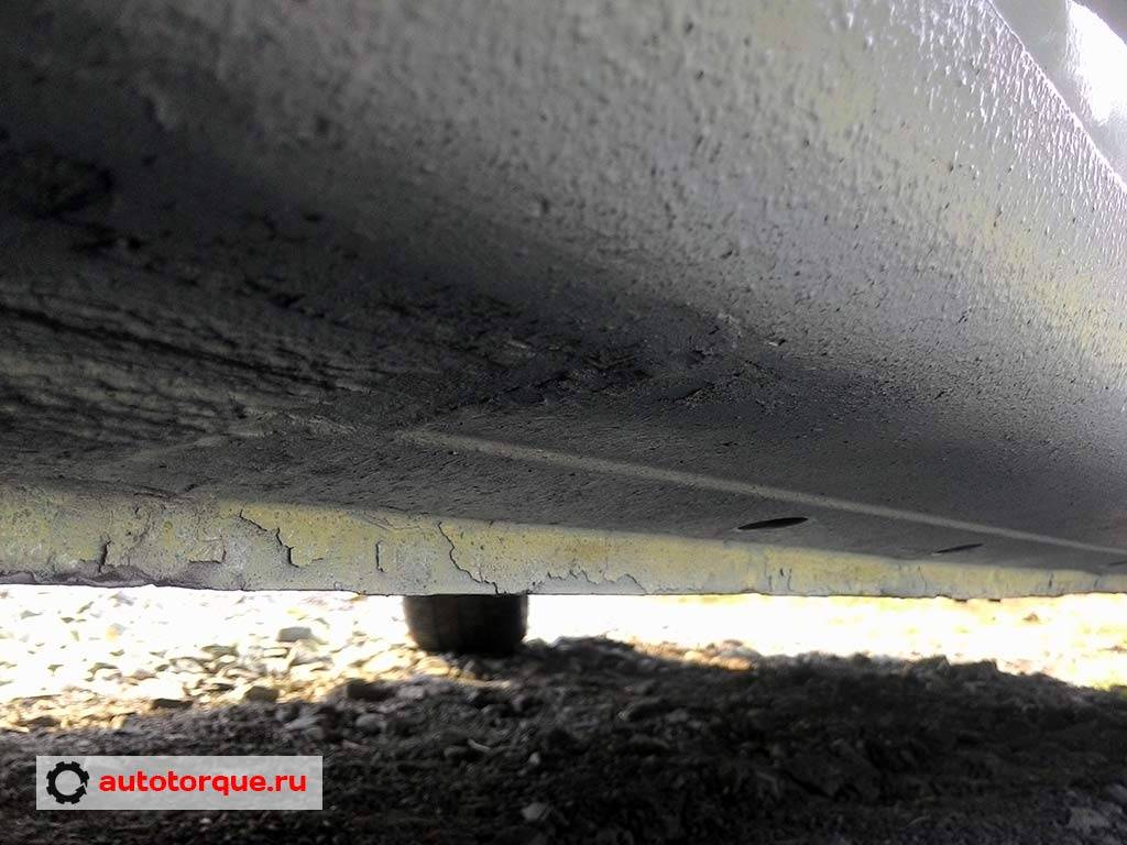 Отказываемся от машины как бы сильно она нас не привлекала, если обнаруживаем следы ремонта на центральных стойках, внутренних арках, лонжеронах и на полу под запасным колесом. Потому что ремонт на данных элементах свидетельствует о серьезных повреждениях геометрии кузова.