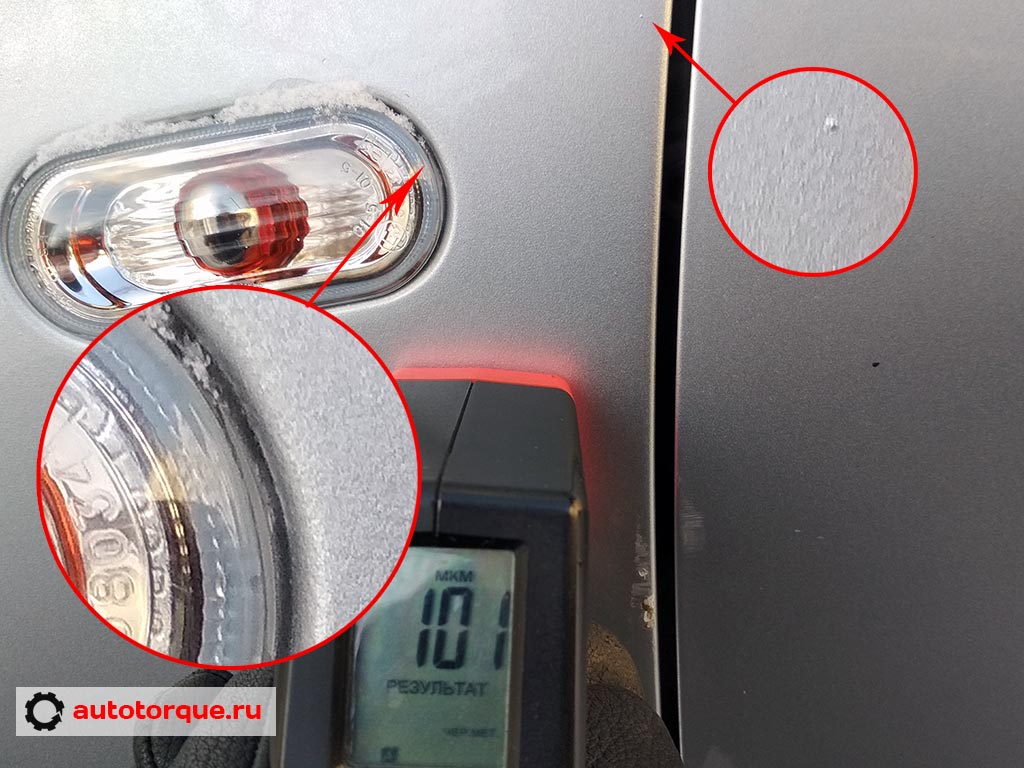 В случае обнаружения на каком-либо кузовном элементе утолщения больше средней толщины лакокрасочного покрытия автомобиля, ему нужно уделить особое внимание. Обязательно посмотрите скрытые полости, только так можно понять размах ремонта