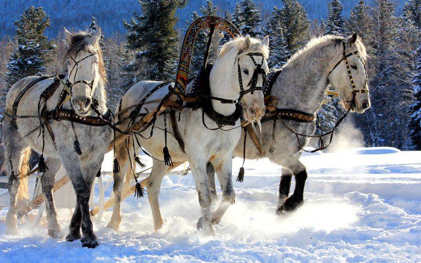 Зимним вариантом кареты являются сани. Катание на санях является настоящей диковинкой и особенно популярно в России из-за затяжных зим небывалой красоты.