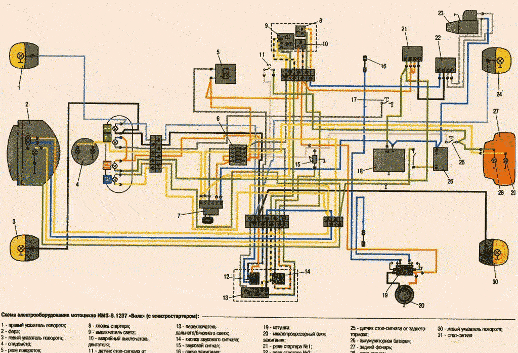 Схема электрооборудования мотоциклов Урал ИМЗ-8 1237(Волк)
