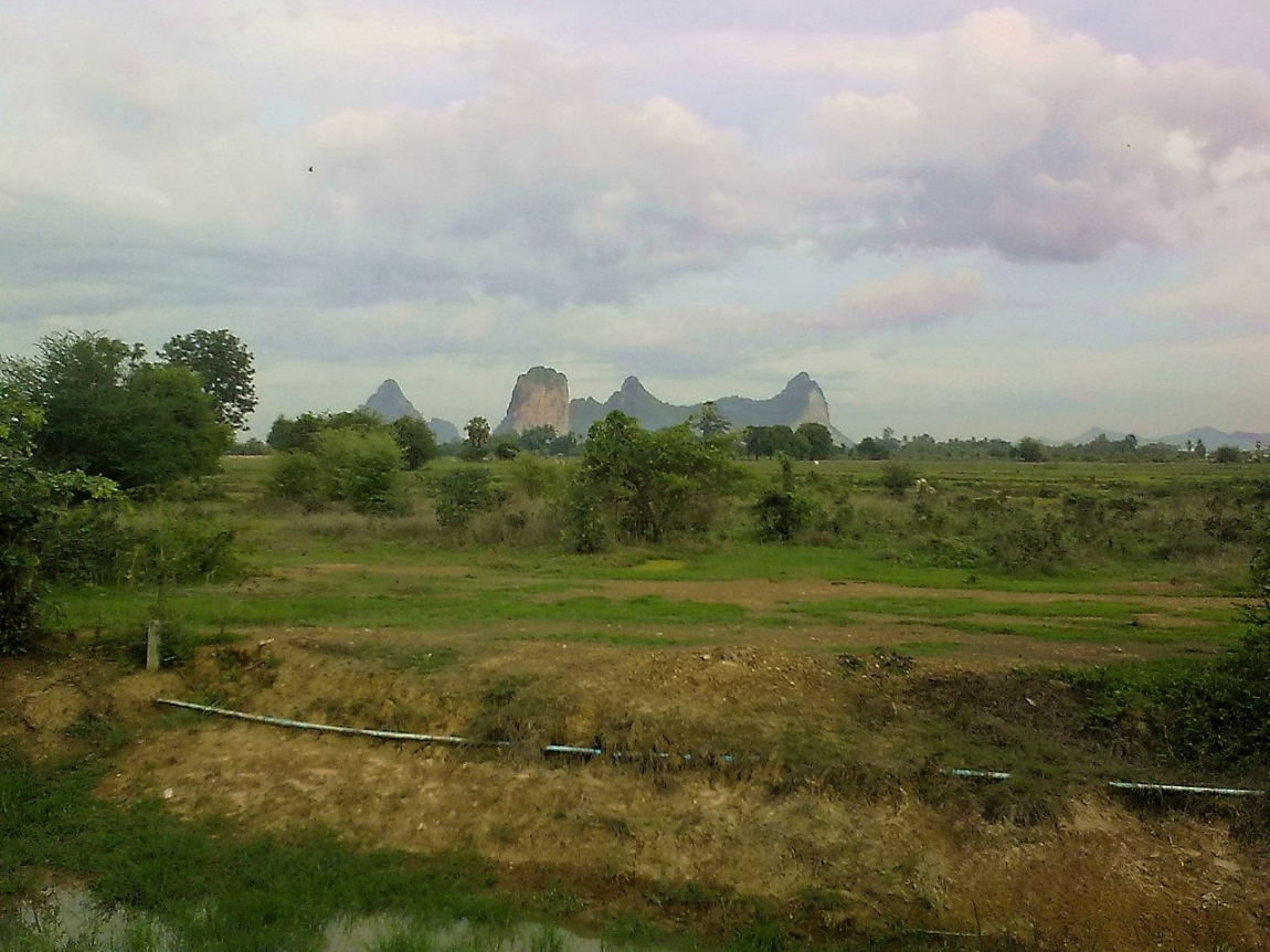 Начало.. Повторюсь для саморазгона, что проснулся, расплатился и полетел вниз на Юго-Восток по шоссе 323 в сторону. Унылый кусок. Я даже сейчас толком не могу понять, где я там колесил. Единственный план был, слиться с дороги 323 ранее Канчанабури в кусты к станции Ван Пхо, на дорогу 3341, оттуда 6018, 3415. На 3415 заправляюсь и мажу цепь у каких-то даунов. Три часа объясняю про бензин и масло. Жара, духотища. Езжу по полям, постоянно рискую потеряться в одинаковых перекрестках. Дорога 3209. Опять жара. На юг к 3313, начинаются тучи, дело идет к дождю. В итоге выруливаю с полей и болот в горку к 3206, там полегче, пустота. Перед горкой заправился. С 3206 сползаю опять в поля, жара. У какой-то деревни вдруг начинается жутка вонь свинарников. Что я тут делаю? Вдалеке обломки скал. Будда сияет на всю округу.
