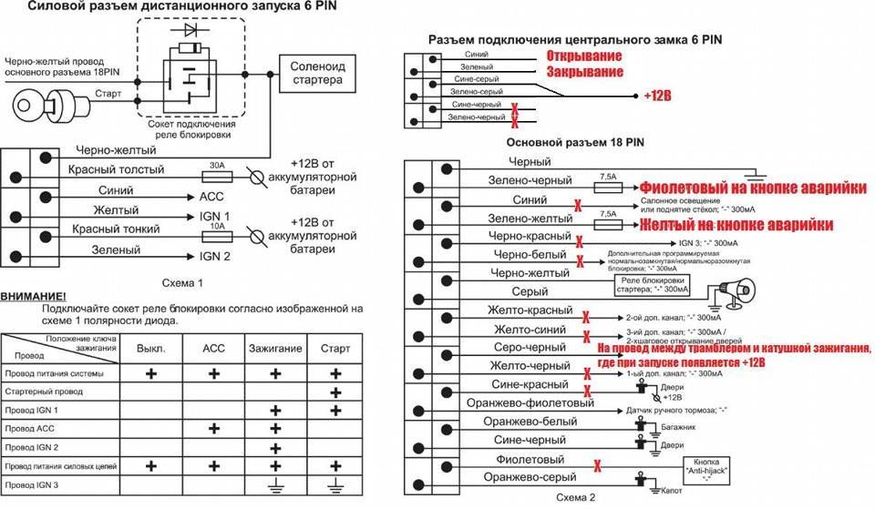 Если говорить о подключении центрального замка, известной является схема, рекомендуемая самим изготовителем автосигнализаций: