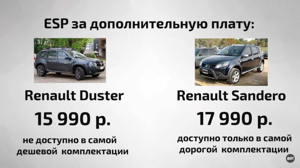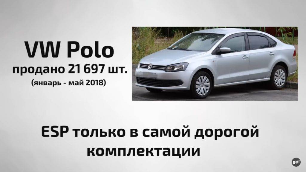 Такой закон есть только для системы ABS, которая помогает тормозить. С 2016 года все новые машины в РФ обязаны иметь ABS во всех комплектациях, а наличие ESP зависит от производителя. Вот топ 15 самых продаваемых моделей в России. В 9 из них все машины оборудованы ESP во всех комплектациях. То есть всё-таки большинство новых машин в России продается с ESP, но есть отстающие марки.