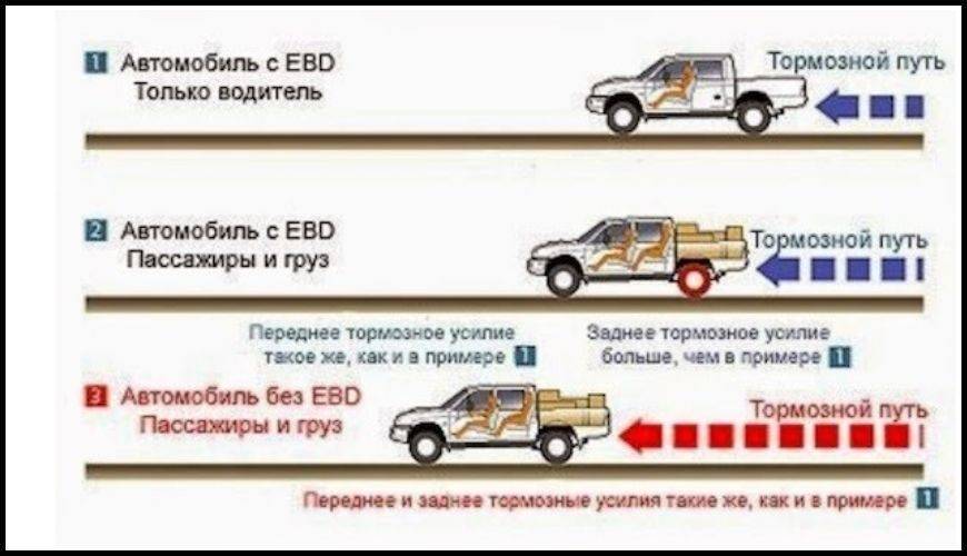 Современные антиблокировочные системы позволяют не только осуществлять так называемое прерывистое торможение, но и управлять тормозными усилиями колес на каждой оси в зависимости от их проскальзывания. Эта система называется EBD, но о ней мы поговорим позже.