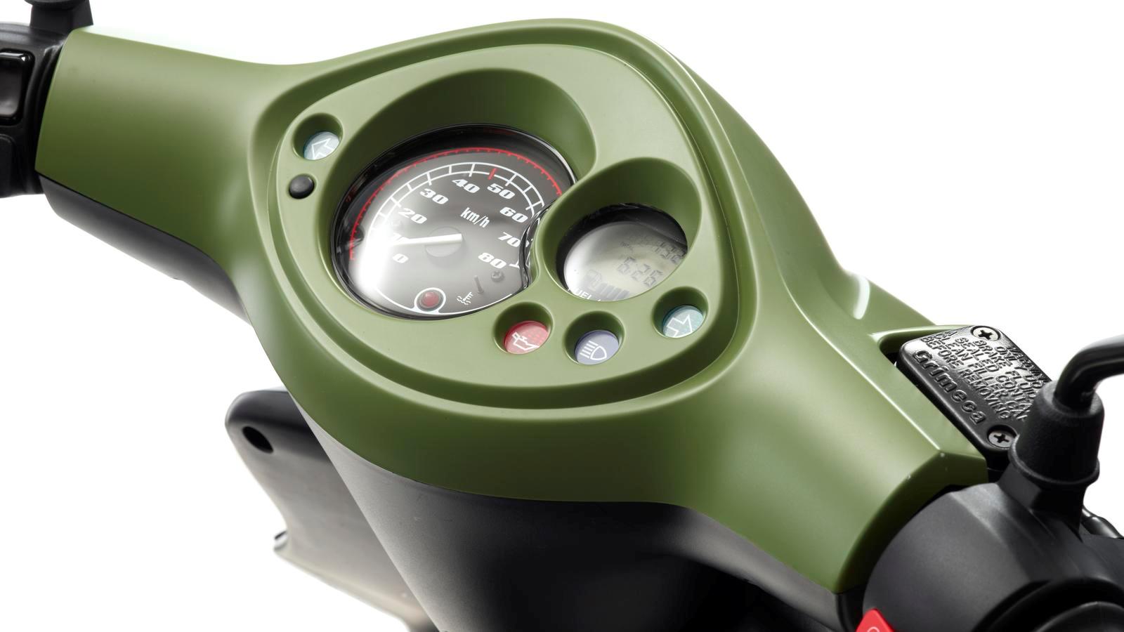 Эргономика, как всегда, на высоте: всё на своих местах и всем удобно пользоваться. Отличительной особенностью именно этой модели можно назвать электронное табло на панели приборов с выводом показаний одометра и уровня топлива. Помимо этого, модель получила более серьёзные габариты, что самым прямым образом отразилось на комфорте: сиденье стало намного больше и легко сможет принять двух человек. То есть на этом скутере можно легко передвигаться с пассажиром. Помимо этого, скутер имеет бардачок по сиденьем очень не маленького размера, плюс задний багажник, на который можно разместить груз или установить кофр.