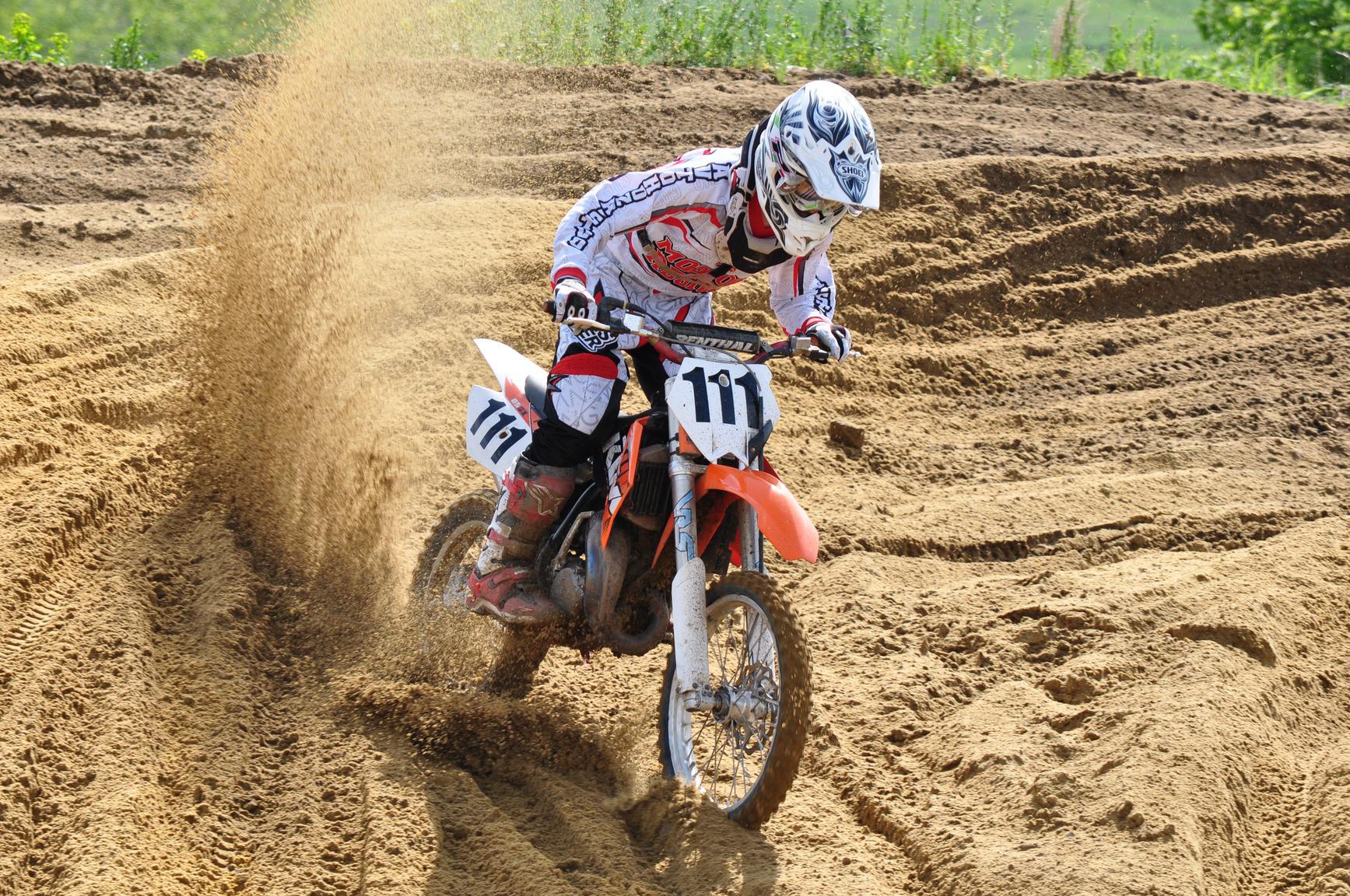 мотокросс. Выбор всякого поклонника внедорожного транспорта: от квадроциклов до кроссовиков. Отличительные особенности: вытянутый вперёд козырек, защищающий от грязи, брызг и веток деревьев, и выдающаяся челюсть. Окраска — яркая и заметная. Также у мотокроссовых шлемов улучшенная система вентиляции, обеспечивающая хороший приток воздуха. Идеален для тандема с мотоциклом класса эндуро (Suzuki Djebel 200, KTM 500 XC-W, Yamaha TT-R 250).