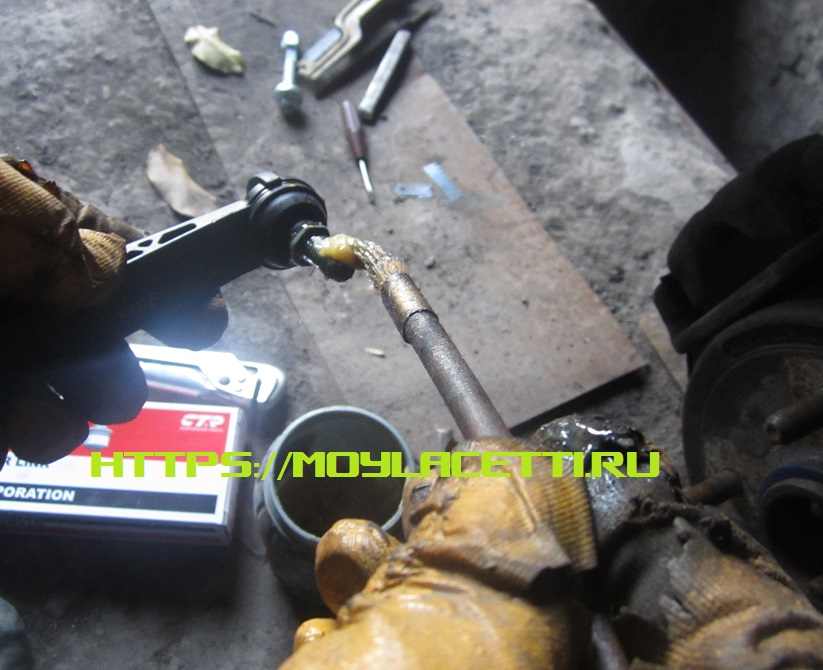 Пробуем открутить ржавую шпильку с гайкой. И о-чудо! Смазка работает – гайка без усилий откручивается.