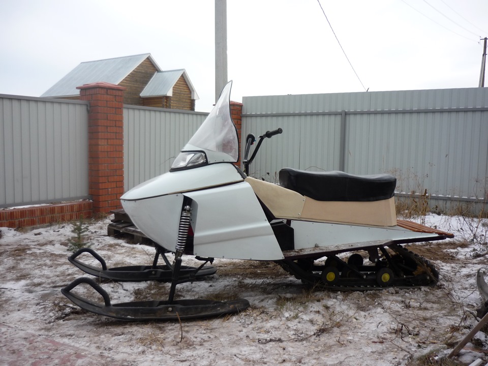 Лобовое стекло от снегохода “Тикси”, фара от скутера “Атлант”, капот изготовлен из капота ВАЗ2110. Лыжи от снегохода “Тайга”.