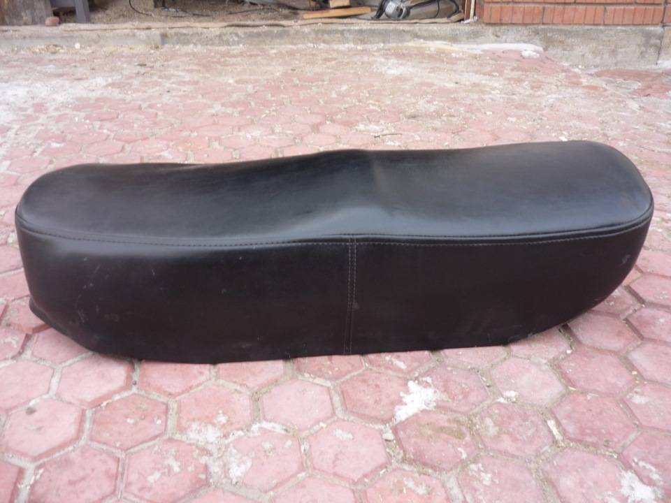 - Далее вырезал подходящий по размерам кусок фанеры для сидения, но прежде чем зафиксировать его, оббил поролоном и обшил кожей. Можно использовать для этих же целей также старое одеяло и дерматин в целях экономии;