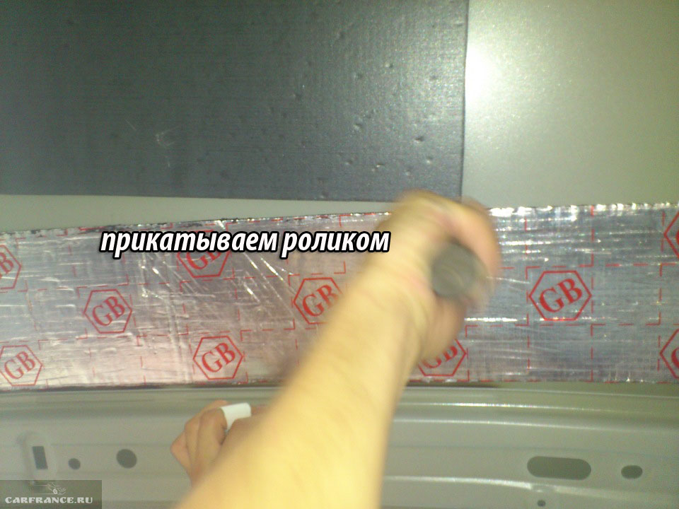 - Поверх виброизоляции наклеивают звукоизоляционный материал. Тут все делают по аналогии, никаких принципиальных различий нет.