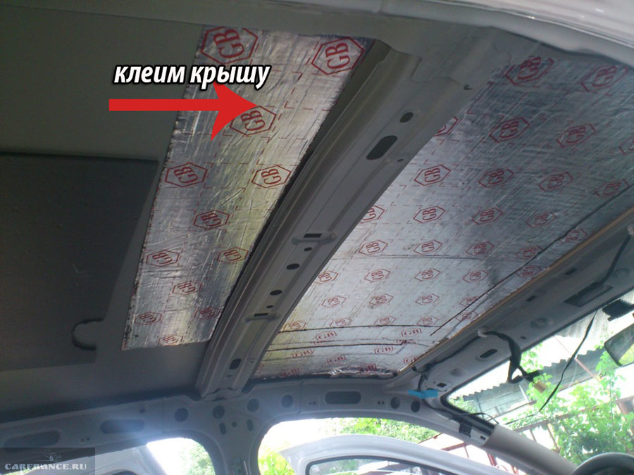 - Потолок. Вибрация и шум от этой части особенно заметны при езде на высоких скоростях. Заводская изоляция есть, но она очень тонкая и занимает меньшую часть общей площади крыши.