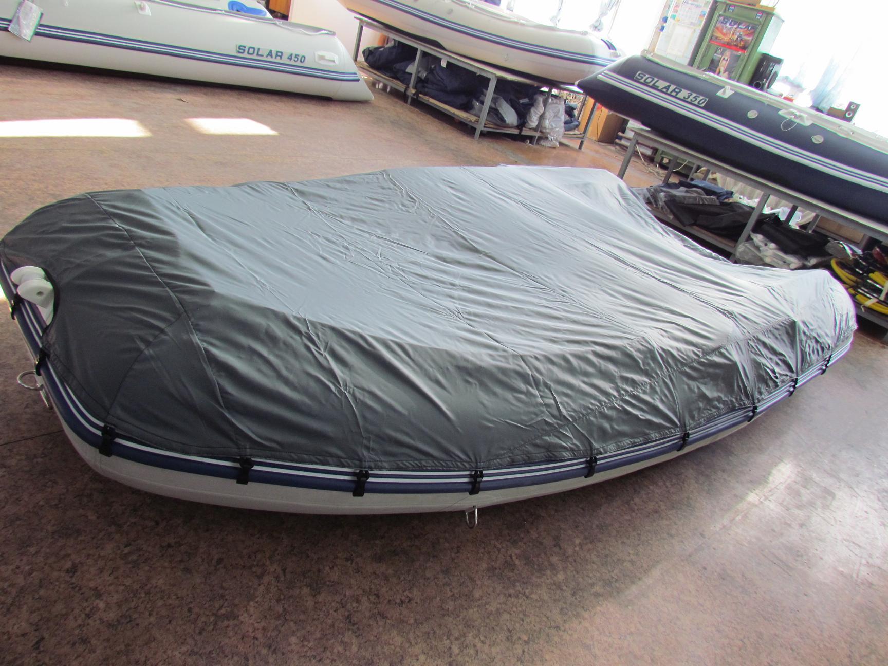 Его применяют для готовых к эксплуатации лодок с предварительно монтированными на его борт моторами. Этот факт дает основания для продуманного создания конструкции чехла с защитой от повреждения моторного агрегата. В моторной части для создания чехла можно применить амортизирующий материал, защищающий от мелких повреждений. Этот вид тента не должен быть со сложной конструкцией крепления, так как при снятии его с лодки не должно затрачиваться много времени на его демонтаж.+