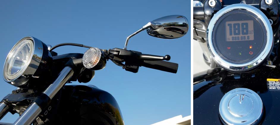 Компактная и довольно информативная приборная панель отлично вписывается в антураж мотоцикла, однако с читаемостью показаний тусклого ЖК-дисплея при ярком дневном свете возникают сложности…