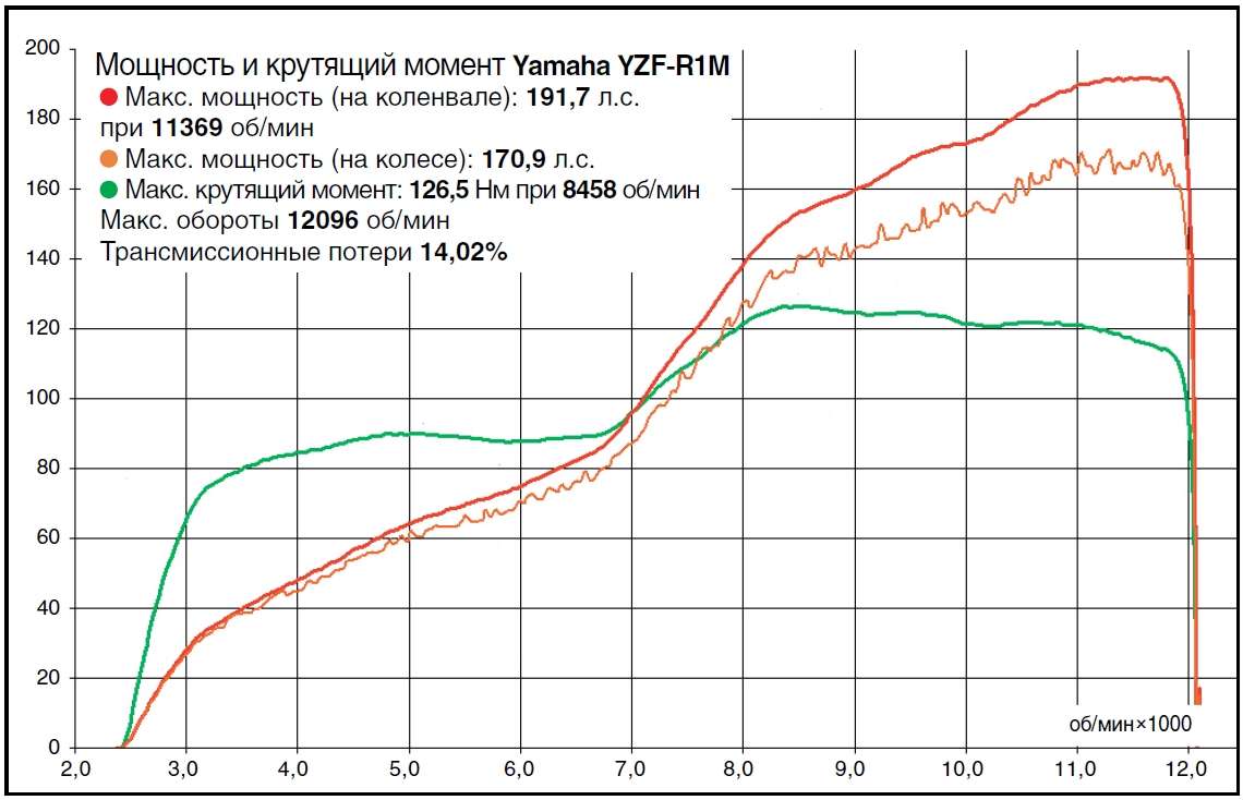 Если говорить о двигателе, то отдача мощности очень ровная, начиная с самых низких и заканчивая предельными оборотами. Иными словами, вы всегда «на моменте», нет той проблемы, которая была у предыдущего YZF-R1, когда на высоких оборотах двигатель «умирал». Сейчас мощность «тянется» во всем диапазоне тахометра, без истерик и подрывов.