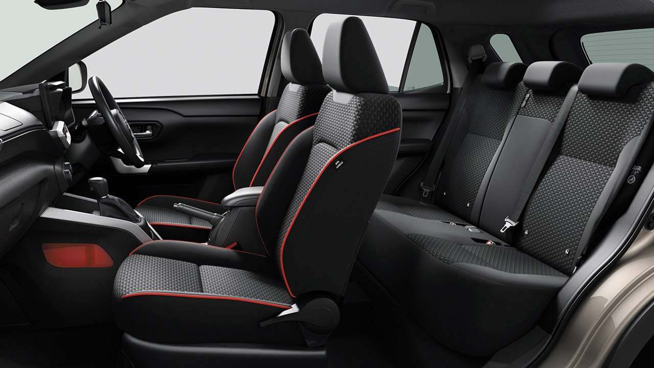 Разработчики подготовили для кроссовера несколько линий внешнего оформления. Так, можно выбрать спортивный, премиальный или «мощный» стиль. Каждый из них предполагает оригинальный декор кузовных элементов, в частности, отличается обвес по периметру. Цветов кузова у нового Toyota Raize восемь, причем три оттенка могут использоваться в комбинации с контрастной черной крышей Black Mica. Размер колес автомобиля составляет 17 дюймов, на диски надевается резина 195/60 R17.