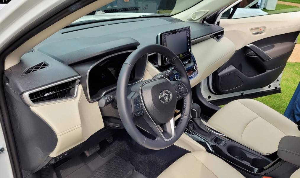 Гибридная модификация одинакова по обе стороны океана: Corolla Cross Hybrid развивает 122 лошадиные силы, а силовой агрегат состоит из незаряженного двигателя 1.8, электромотора и тяговой батареи. Обе версии кроссовера оснащены вариатором, но обычная Corolla Cross имеет коробку передач с десятиступенчатой имитацией и механической первой передачей, тогда как гибрид не имеет «виртуальной» передачи. В обоих случаях привод только передний. Стандартное оборудование включает светодиодные дневные ходовые огни и противотуманные фары, приборную панель с 4,2-дюймовым цифровым экраном, кондиционер, регулируемую по высоте и вылету рулевую колонку, электроусилитель руля, мультимедийную систему с 8-дюймовым сенсорным экраном, поддержкой Apple CarPlay и Android Auto, камеру заднего вида, 17-дюймовые колеса и семь подушек безопасности.