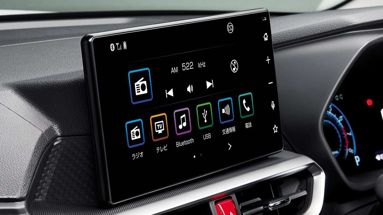 В топовой комплектации центральная консоль выглядит стильно. Ее главный элемент – 9-дюймовый сенсорный дисплей мультимедиа Raize с навигацией, умеющий сопрягаться со смартфонами. Ниже вполне красивый блок климата на паре шайб, кнопках и мониторе. Еще ниже кнопки подогрева сидений и порты для зарядки телефона.