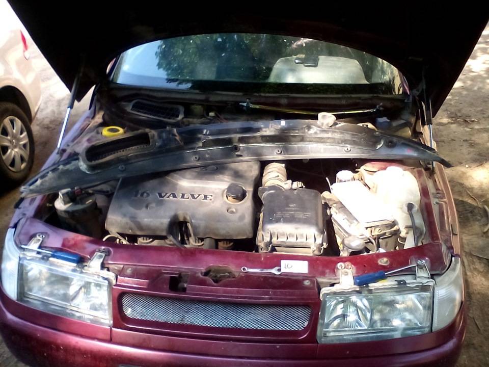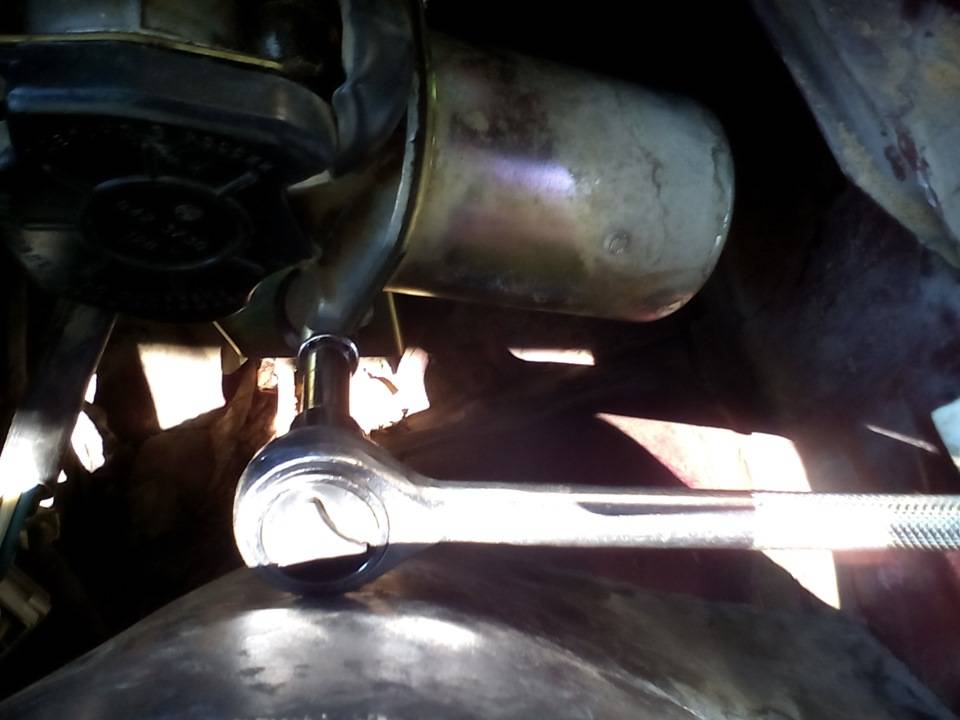 Ключом на 10 отворачиваем правую гайку (с пассажирской стороны) под нее (моей) головкой не подлезть.