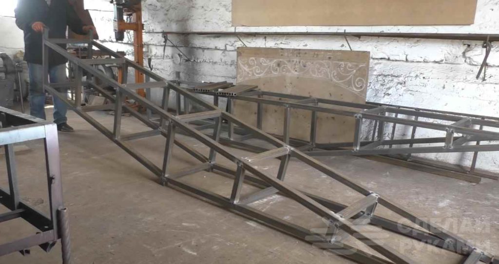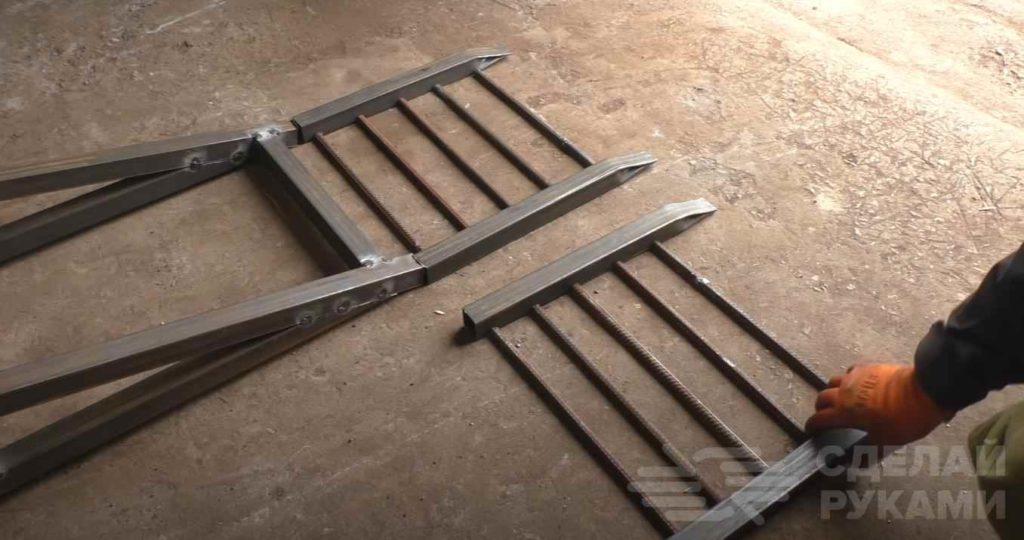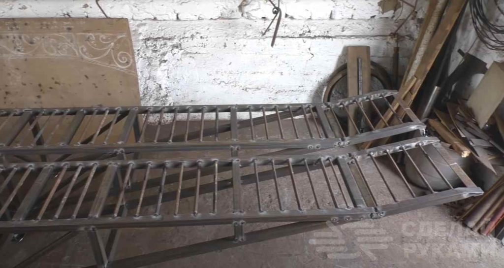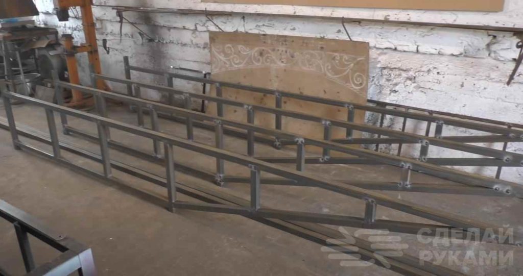 Дополнительно нужно будут сварить две площадки — начало заезда на трапы. Размеры площадок — 50х50 мм. Для их изготовления автор использовал профильную трубу и арматуру.