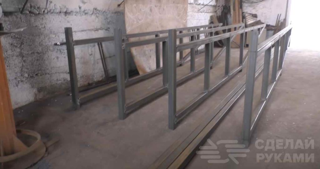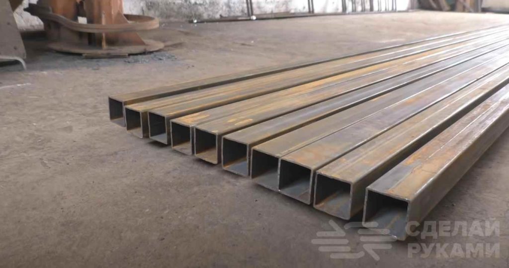 В данном случае для изготовления конструкции будем использовать профтрубу 40х40 мм (всего потребуется 60 метров). Дополнительно мастер использует профиль 25х25 мм (потребуется около 12 метров).