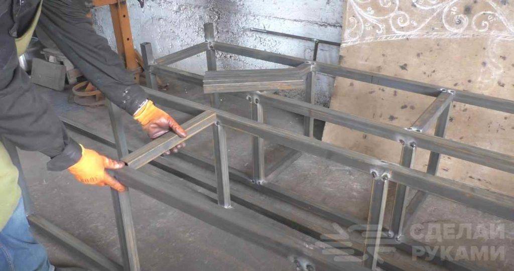 - После изготовления все элементы скрепляются болтами, а не сваркой, что позволит разобрать конструкцию в будущем.