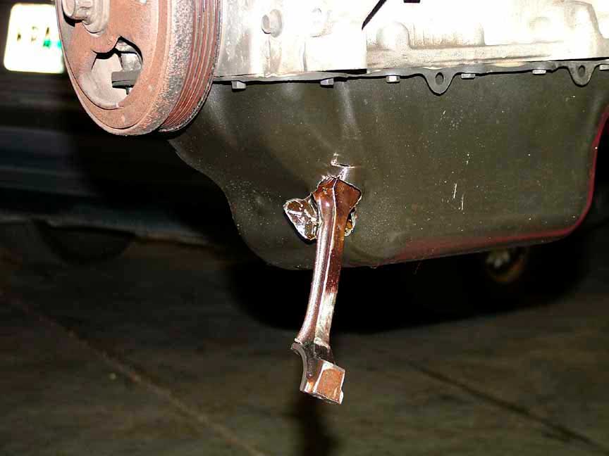 Необходимо отметить, что чаще всего явно выраженные шумы прослушиваются на малых оборотах коленчатого вала, т.е. на холостом ходу. Стук шатунов также хорошо выражен в нижней части блока цилиндров, если даже не использовать стетоскоп. Шатунный стук может появиться из-за износа вкладышей и это может сопровождаться миганием аварийной лампочки давления масла. Чрезмерно сильный шум шатунов опасен тем, что если, например, после ремонта не произвели нормированную затяжку болтов крышки шатуна, то она может отсоединиться и шатун, отскочив от шейки коленчатого вала может стучать о стенку блока и в конечном итоге пробить ее. В народе такую техническую аварию называют «шатун показал кулак».