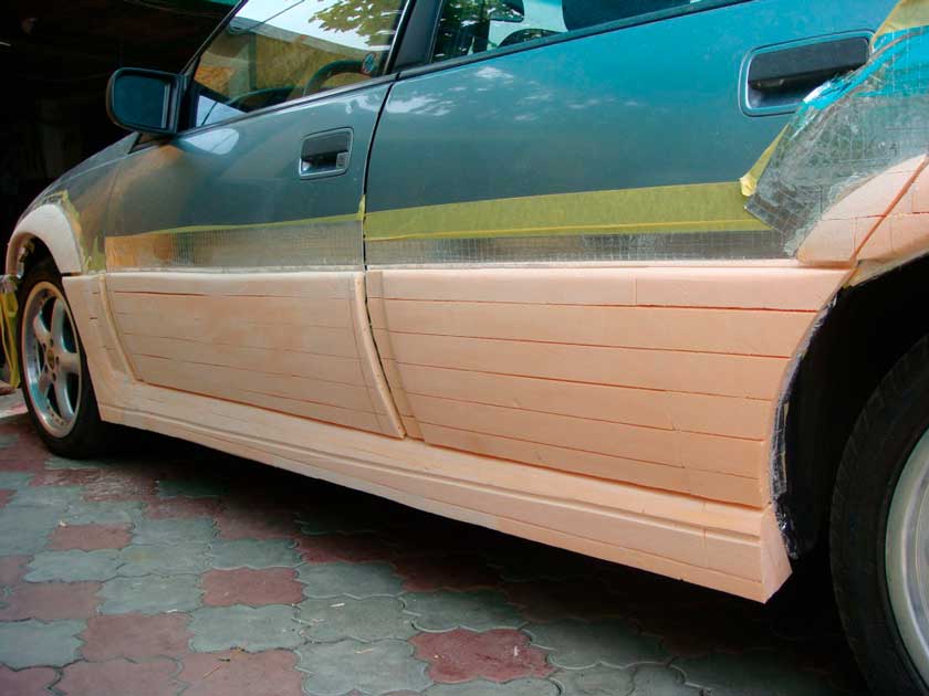 После высыхания краски остается только установить оригинальный порог на автомобиль. Использование пенопласта значительно упрощает задачу создания накладок, однако данный вариант является наименее надежным и прочным.