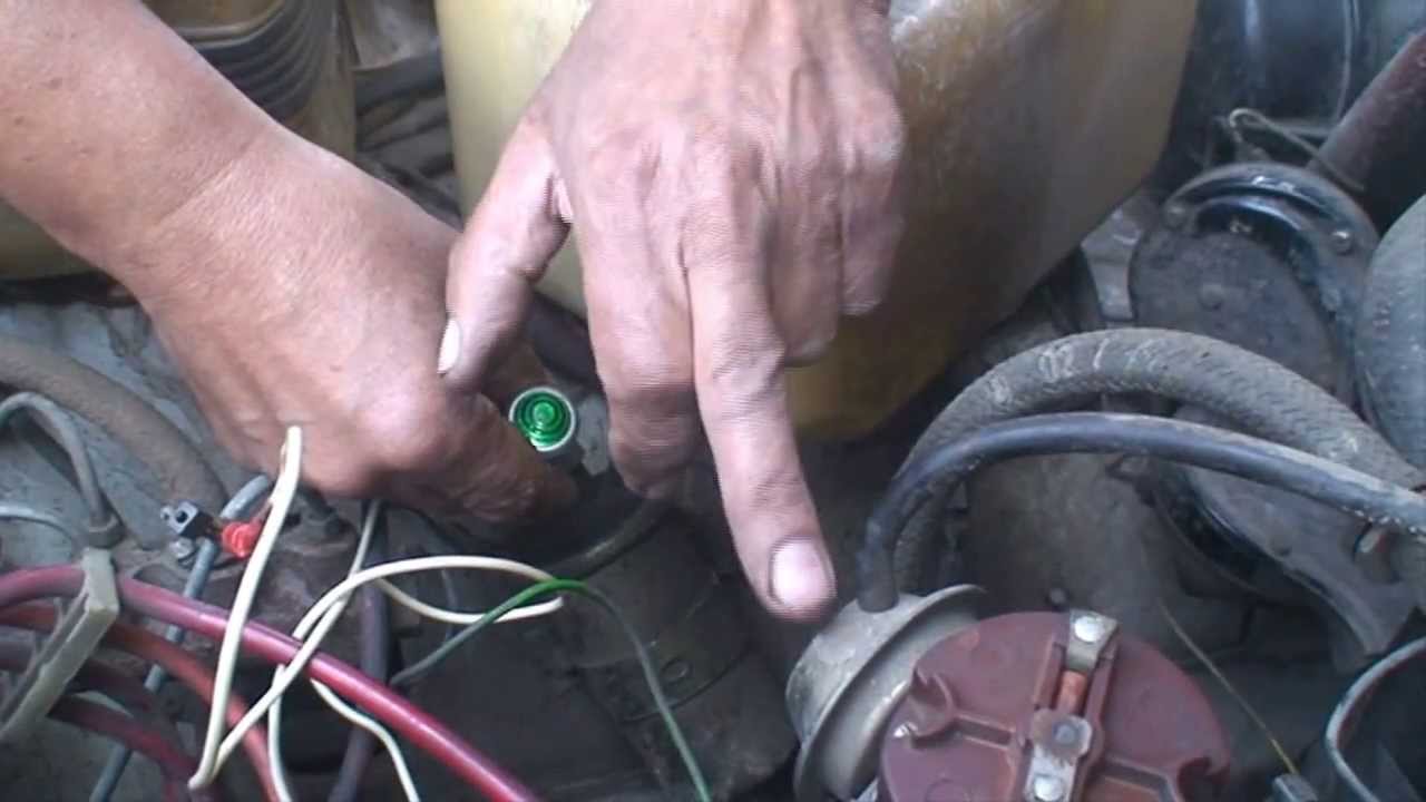 Примечание. Лампочку (индикатор) надо подключить так, чтобы она горела при разъединении контактов трамблёра и гасла при их смыкании (естественно, после включения зажигания ключом).