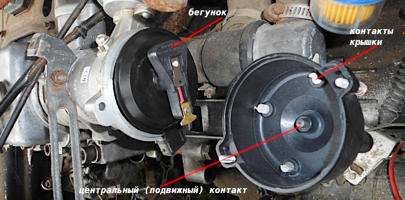 положения трамблера и места “встречи” бегунка с контактной пластиной.