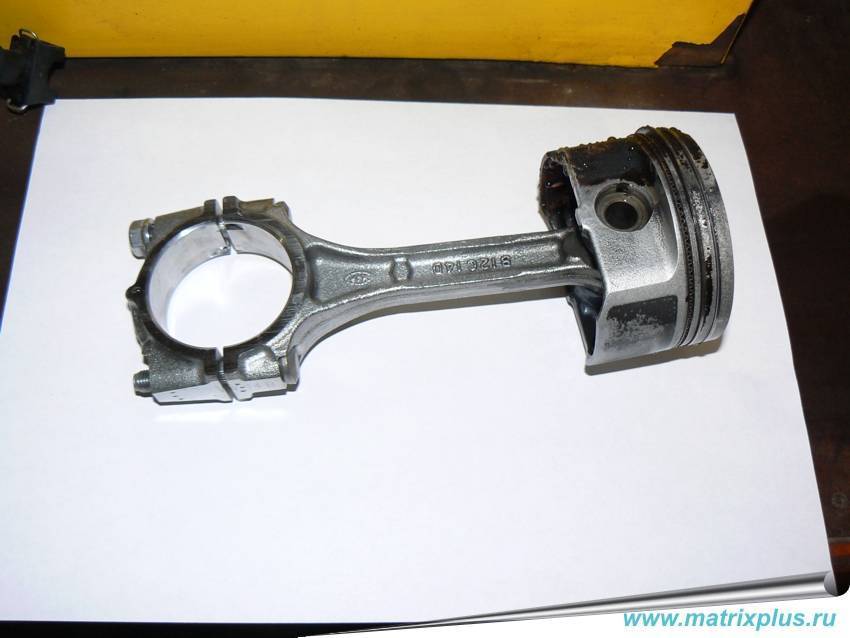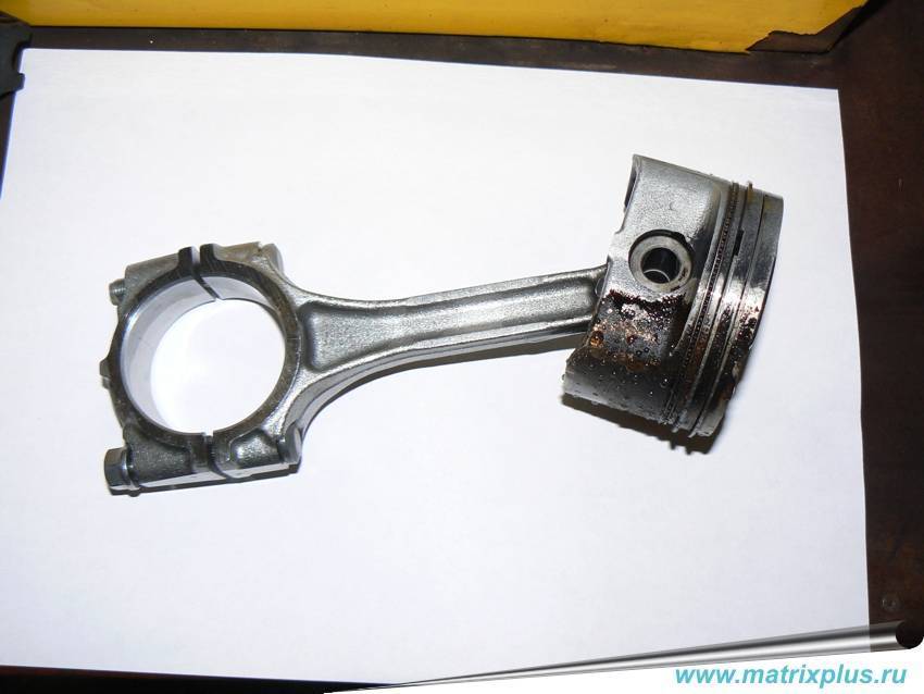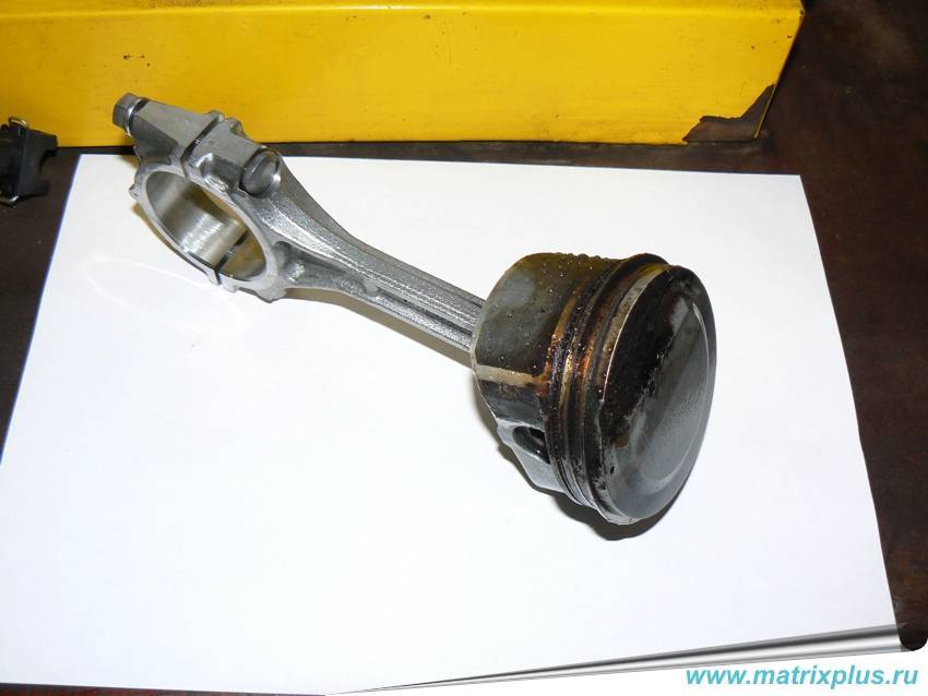На фото показан очищенный поршень и очищенный шатун, специально чистили половину поршня для визуального контроля очистки