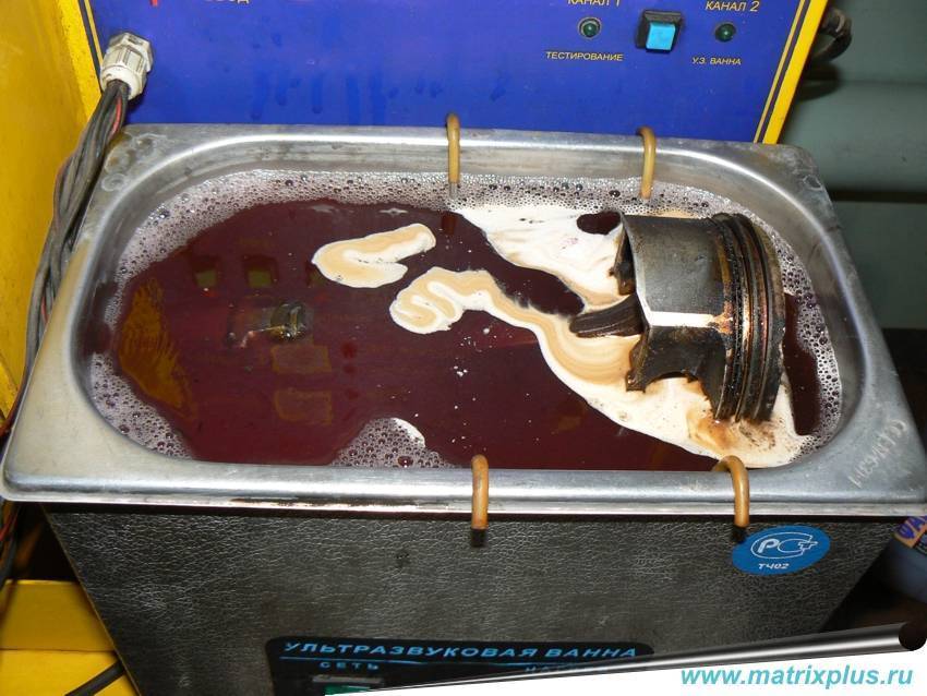 Опускаем поршни в ультразвуковую ванну с раствором Фаворит Ультра для очистки деталей