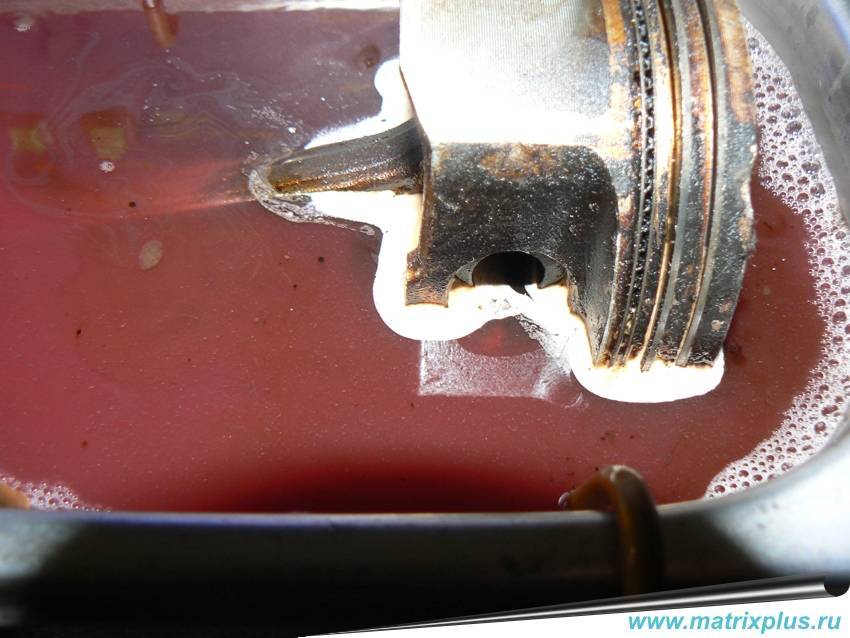 Для эффективности очистки и сравнения результатов половина поршня остается не в рабочем растворе.